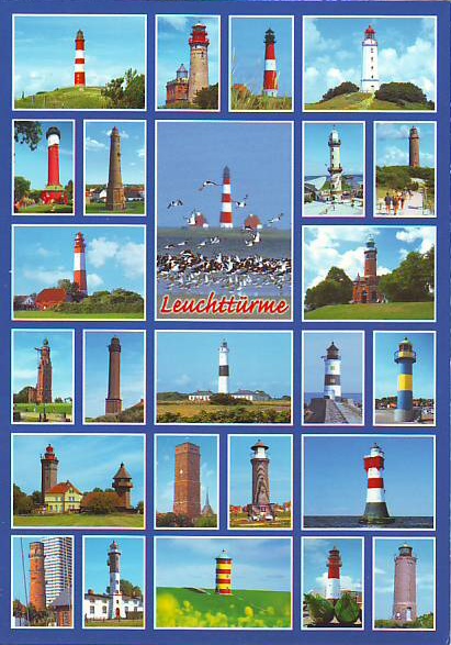 1. Amrum, 2. Rügen, 3. Sylt, Hörnum, 4. Hiddensee, 5. Wangerooge, 6. Börkum, 7. Westerhever, 8. Warnemünde, 9. Darss, 10. Fehmarn, 11. Kiel, Holtenau, 12. Bremerhaven, 13. Norderney, 14. Sylt, Kampen, 15. Schleimünde, 16. Eckernförde, 17. Dahmeshöved, 18. Borkum, 19. Juist, 20. Roter Sand, 21. Travemünde, 22. Poel, 23. Pilsum, 24. Büsum, 25. St. Peter-Ording